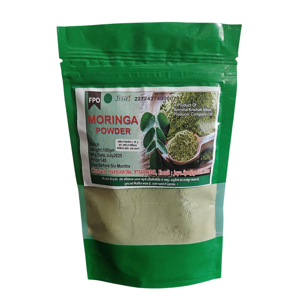 It is made from fresh, naturally grown moringa leaves that are carefully dried and ground to preserve their nutrients.